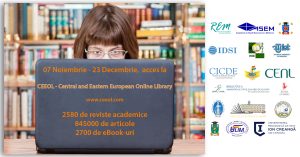Ne bucurăm să vă informăm, că până la data de 23 decembrie, folosind link-ul www.ceeol.com puteți accesa, prin IP-ul instituțional, peste 2580 de reviste academice și peste 2700 de eBook-uri axate pe Științe Sociale, Științe Umaniste și Arte.