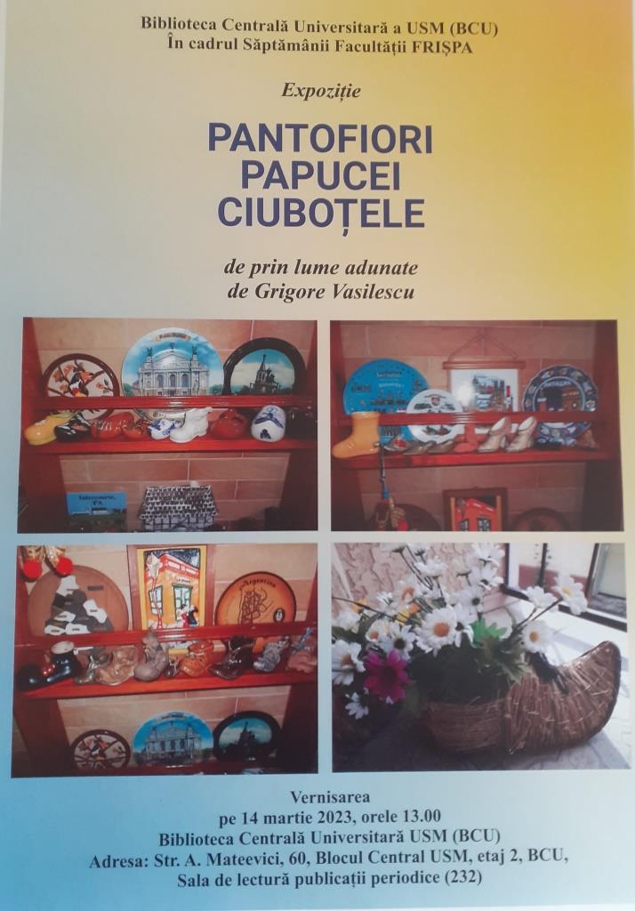 În cadrul evenimentului, începînd cu orele 13.00, va fi vernisată expoziția „Pantofiori, papucei, ciuboțele” – din colecția personală a dlui Grigore Vasilescu.